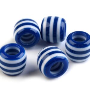 Korálek plastový 10×12 mm – pruhovaný modrobílý